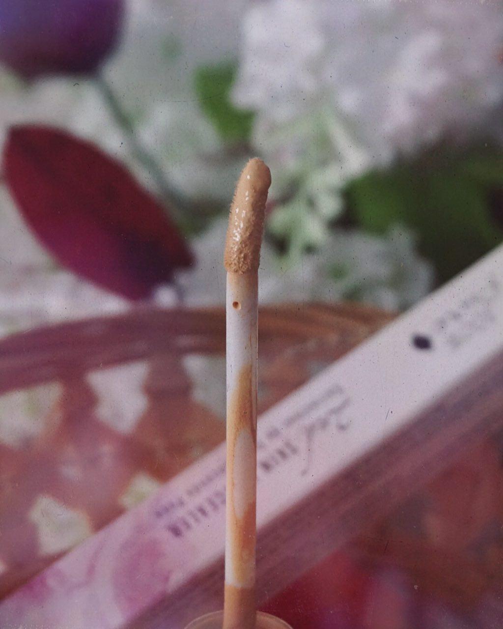 El mango del corrector es de oro rosado y viene con un aplicador habitual de corte biselado y punta redondeada para que llegue a todas las zonas donde queramos aplicar el producto. Es bastante cómodo y absorbe la cantidad justa de producto.