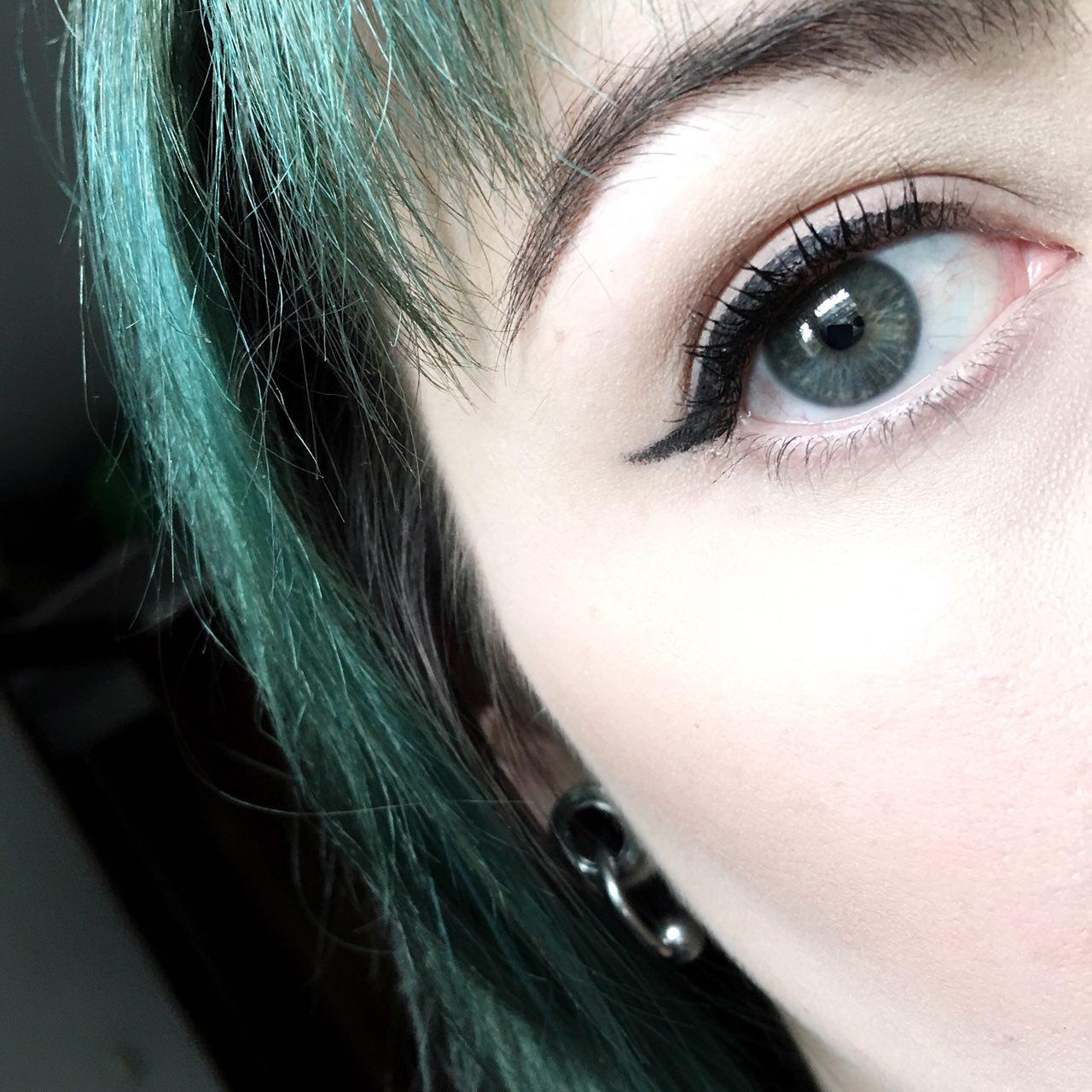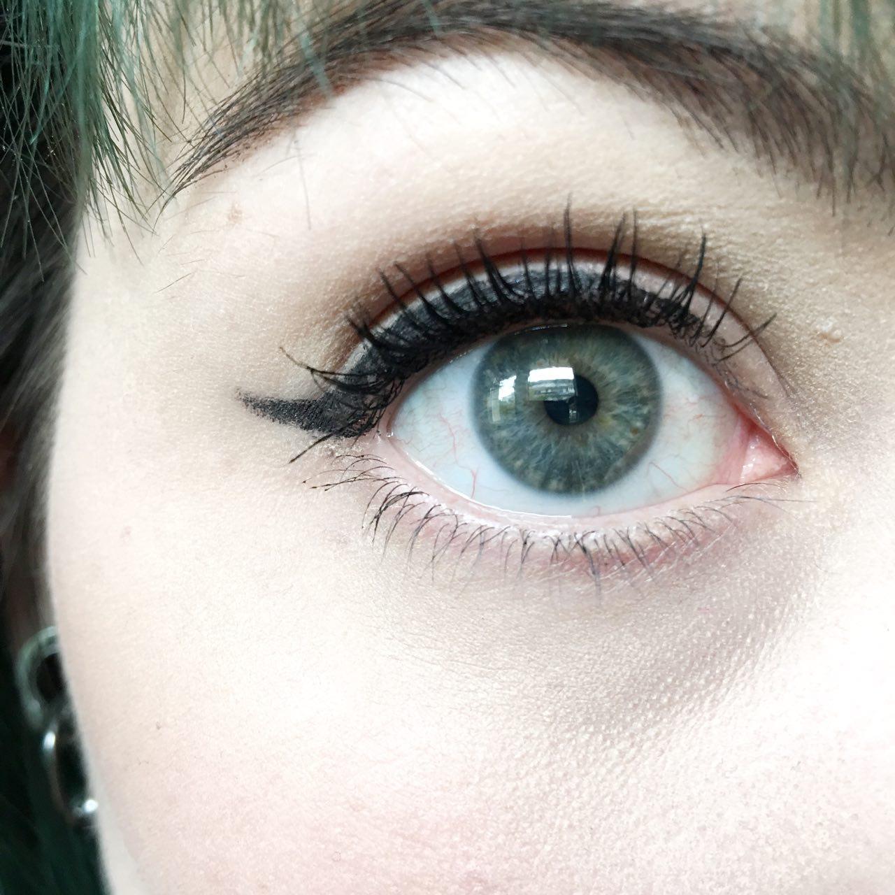 En la segunda foto se muestra el mismo ojo. En esta ocasión, se ha aplicado una primera capa con la máscara de Maracuja de 100% Pure. Las pestañas se aprecian bien separadas, más marcadas porque el color negro las ha intensificado pero siguen viéndose naturales.